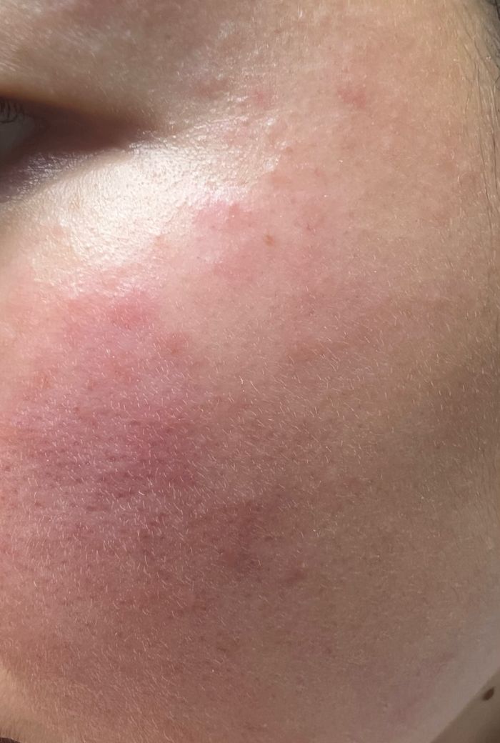 평상시에도 홍조는 가끔 있는편이지만 여드름은 없는편이에요 사진에는 부은게 잘 안보이네요