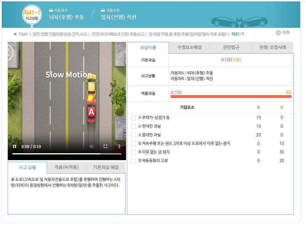 후미추돌시 기본 과실비율입니다. 그리고 수정요소 2가지로 안내 드립니다.....1명 평가사고영상을 보면 3초 정도에 차선변경 완료 후 5초 정도에 충돌이 일어난 것으로 보입니다.