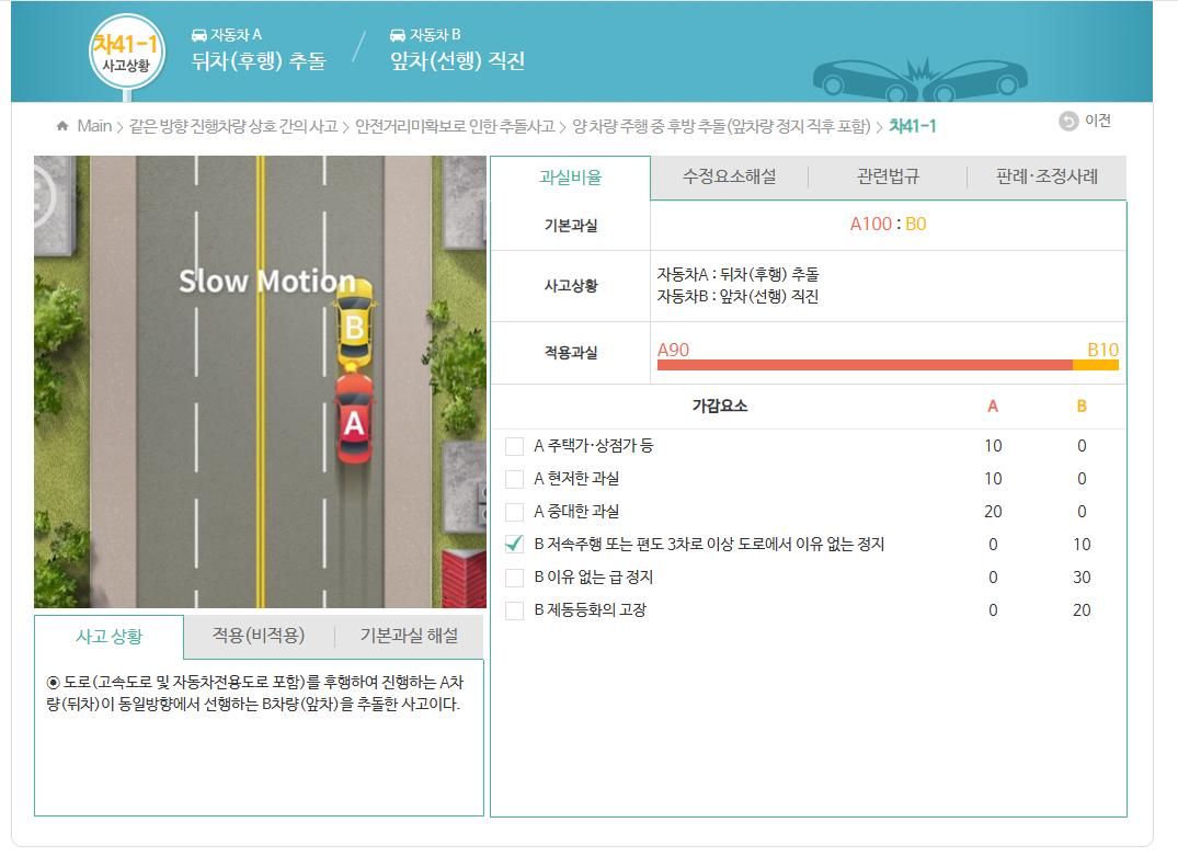 보나 상대방이 후방 추돌을 하였기에 10% 과실이 조정되어 블박 차량 60 : 40 상대차의 과실을 적용하게