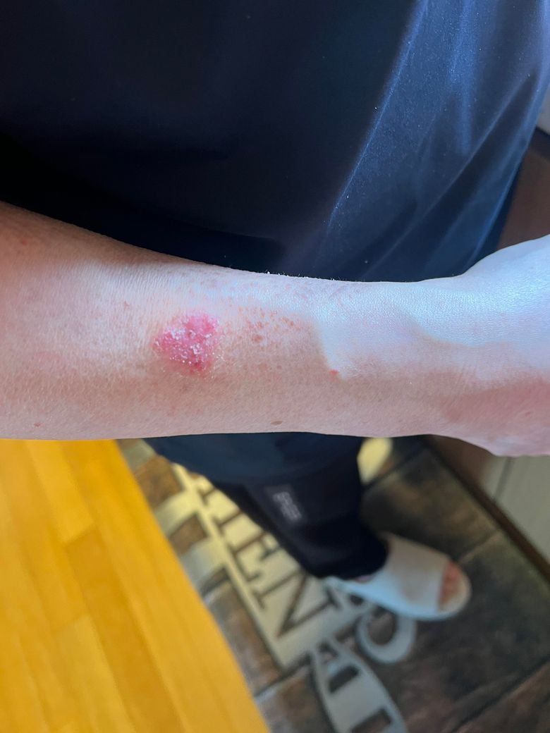 사진 상에 작은 빨간 점에서 시작해서 점점 범위가 커지고 마치 사마귀처럼 질환이 나타나는데