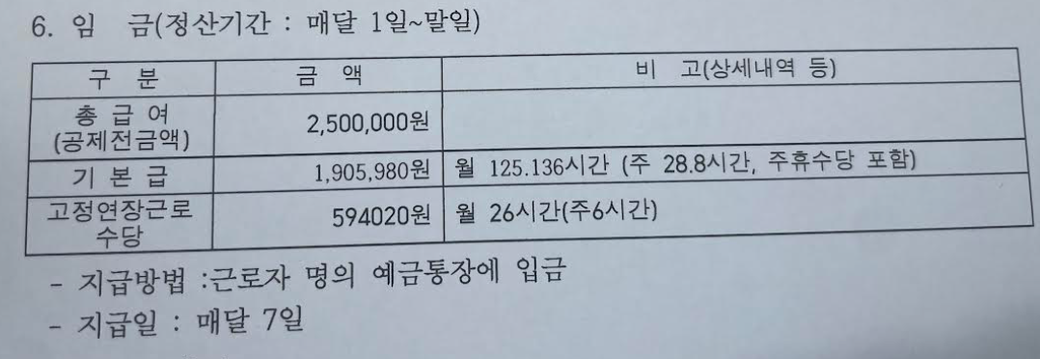 주 3일 근무 - 8시간(1시간 휴식), 2시간 OT계약입니다.