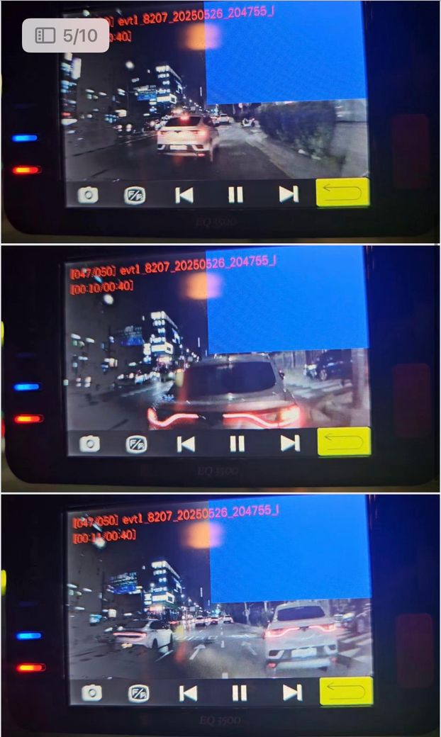 : 상기 블랙박스 이미지를 보면, 상대방차량이 차선변경후 우회전하고자 정지하면서 추돌한 경우로,