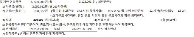 전체적인 계약서 공개시 불이익이 있는거 같아 임금 관련 항목만 캡쳐하여 이미지 첨부 드립니다.