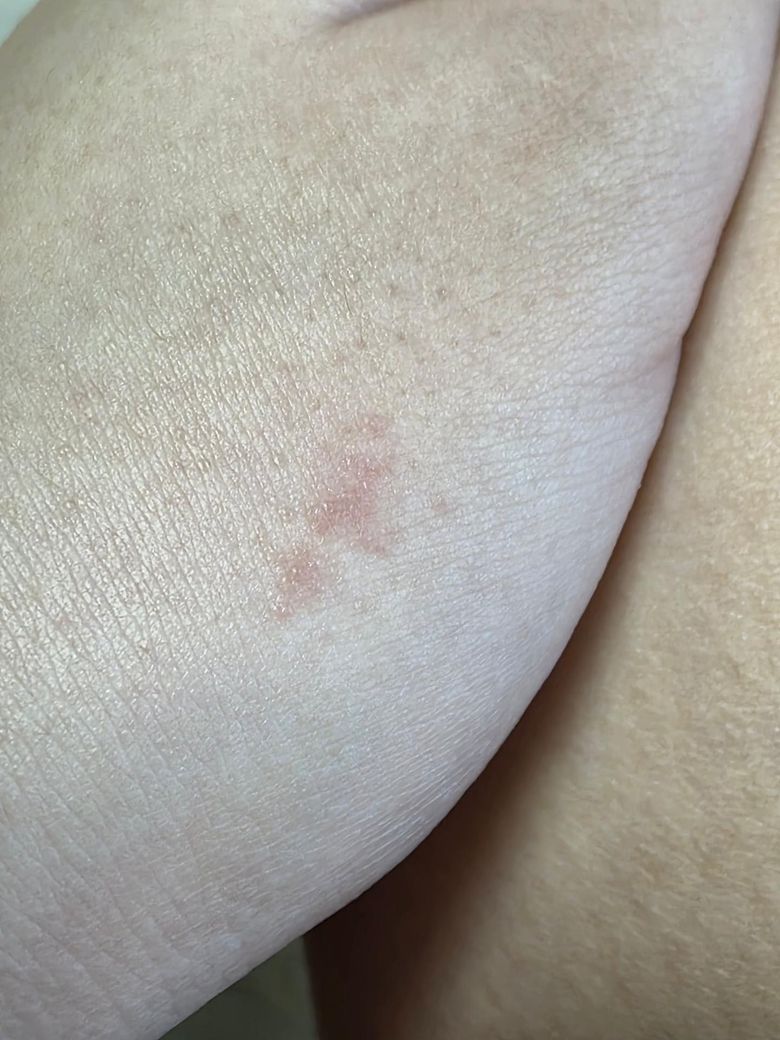 빨갛고 아주 살짝 오돌토돌해요. 가렵진 않고 저런 게 다른 데 있지는 않아요
