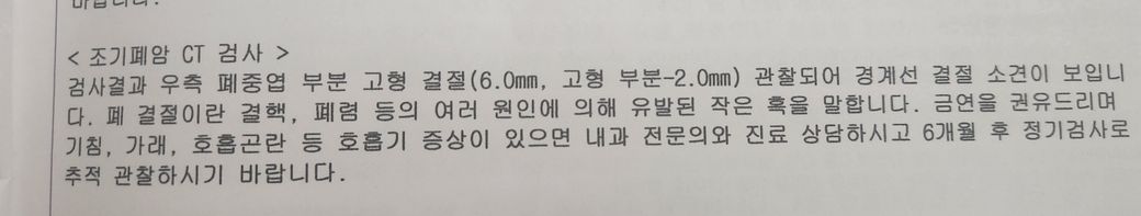종합검진 후 폐결절 소견 위험한가요?