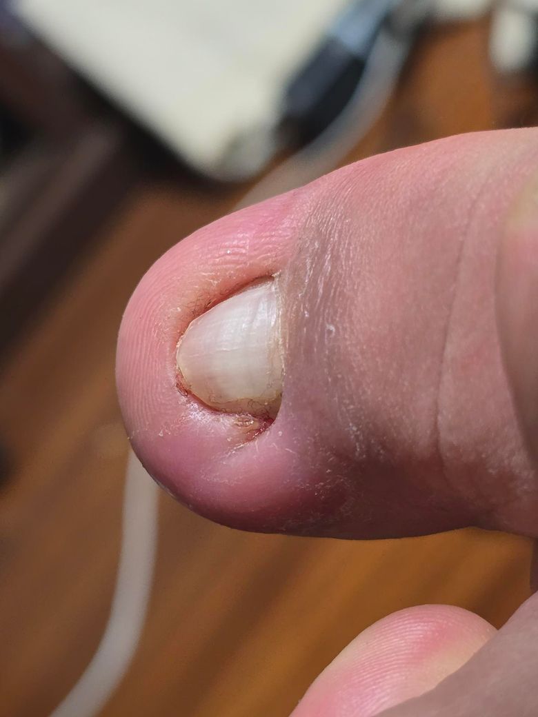 어우... 많이 아프실게 사진만 봐도 보입니다. 우선 사진과 병력을 보면 전형적인 내성발톱(조갑감입) 상태에, 만성 자극으로 인한 국소 염증과 색 변화가 동반된 상황으로 보입니다. 발톱을 짧게 자르면서 끝이 가시처럼 피부를 찌르는 형태가 반복되면, 옆 피부가 두꺼워지고 안쪽으로 더 말리면서 점점 깊어지는 경향이 있습니다.