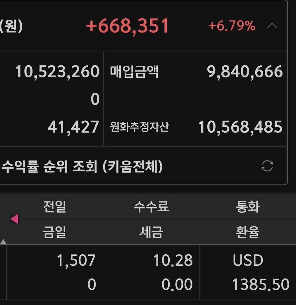 네 화면상 10.28 옆에 통화 단위가 USD로 되어 있습니다. 달러가 맞고 환율은 1385.5원이 적용됩니다.
