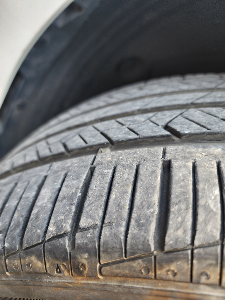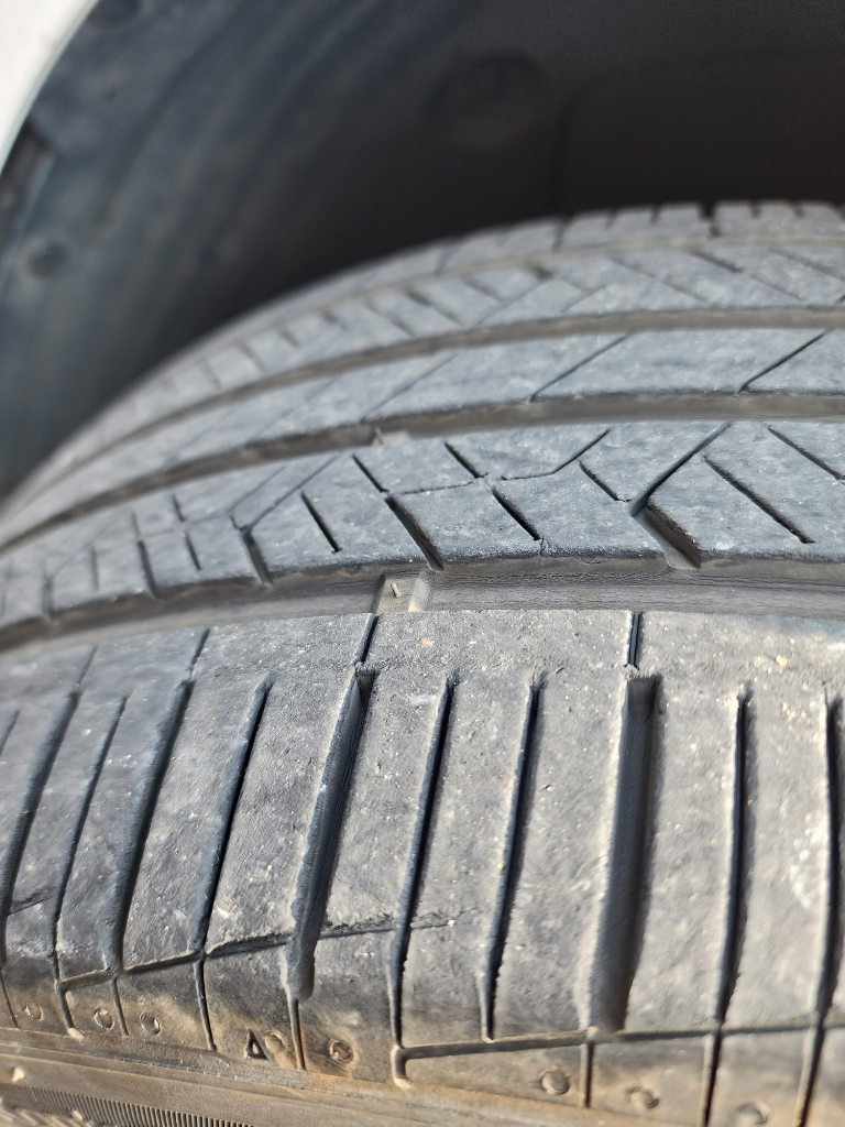 안녕하세요. 기운찬재칼262입니다. 운전 습관에 따라 교체 시기는 달라집니다. 타이어의 안쪽이 잘 보이지는 않으나 편마모는 없는 듯 합니다. 말씀하신 것과 같이 타이어 마모한계는 네모난 부분과 트레드가 같아질 때 타이어 교체 하시면 됩니다.