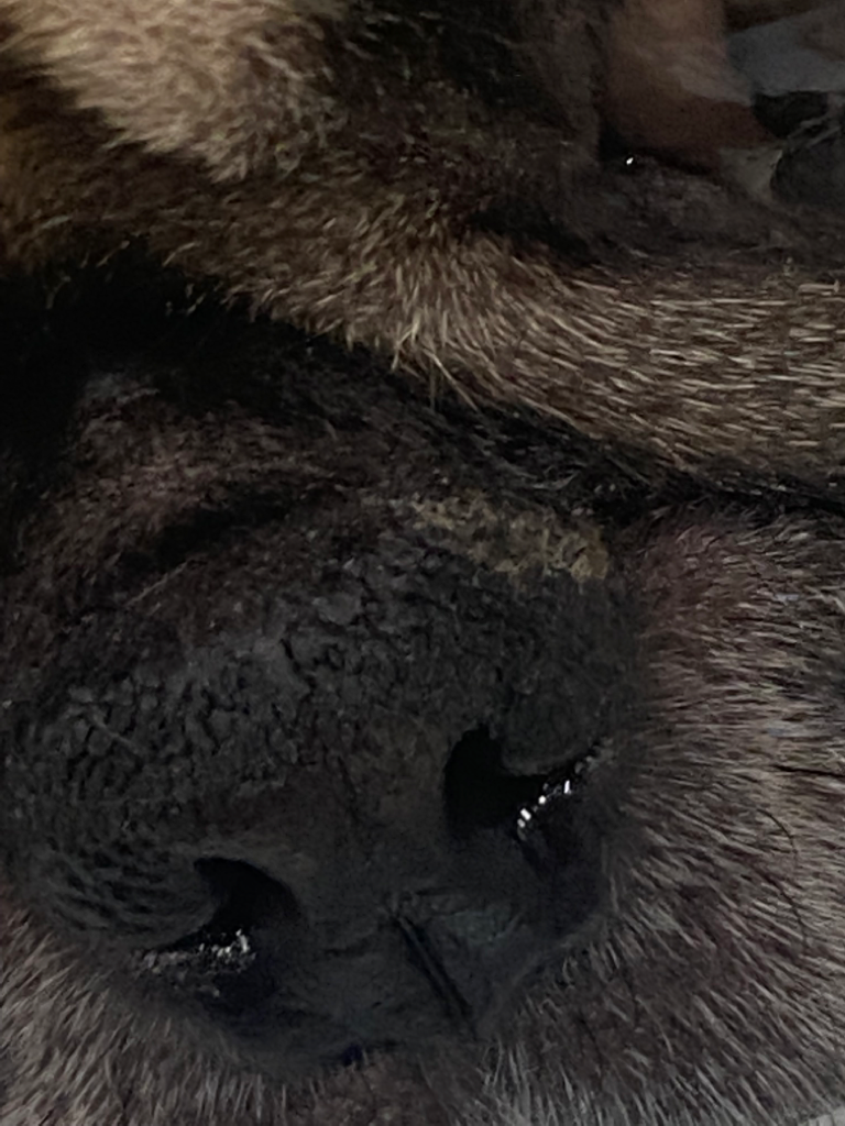 이건 추가적인 질문입니다. 요즘 플라스틱 노즈워크를 자주 시켜줘서 그런지 주둥이 부분에 딱딱한 피지? 같은 게 생겼더라구요 오늘 이 피지 같은 게 손가락으로 살짝 잡으니 빠졌는데 이게 뭔지 알 수 있을까요? 빠진 부분에서 피나 고름 같은 건 없었고, 그 부분을 만져도 아파하거나 싫어하진 않아요!