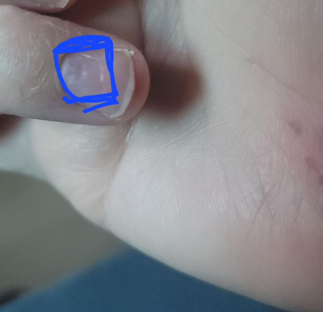 - 이 현상은 주로 손톱을 다듬을 때 손상으로 인해 발생합지만 발톱에도 같은 현상이 생긴다면 철분 부족의 가능성이 있습니다.