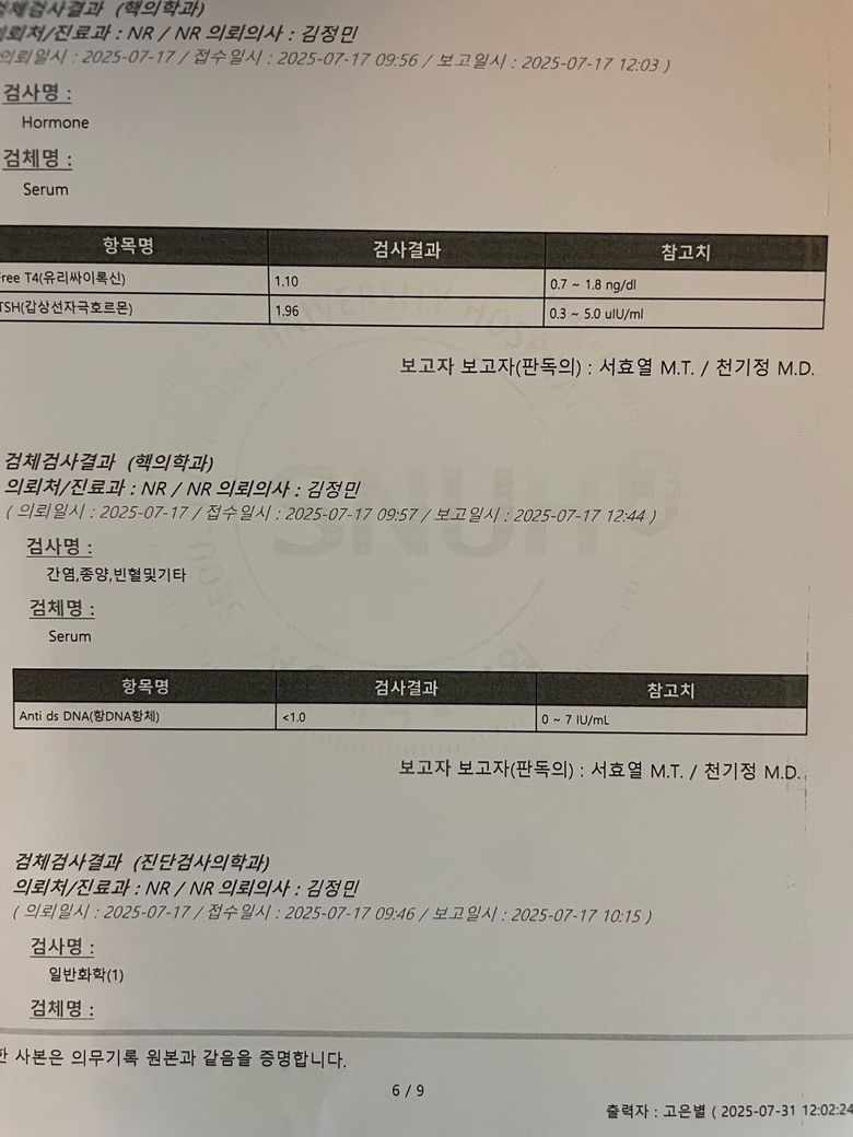 다만 피검사에서 한 가지 항목에서 양성이 나와서 몇 달 뒤 재검 예정입니다.