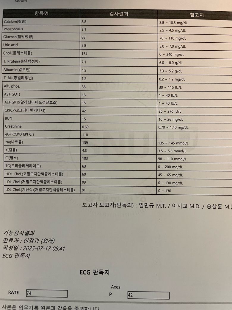 비교적 젊은 나이라서 다발성 경화증등 다양한 가능성을 염두하고 검사를 진행하자 했습니다.