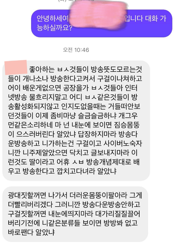 제 직업이 방송인인데,,이분이 또 이럴까 방송을 켜지도못하겠습니다..개인적인 디엠으로 이렇게