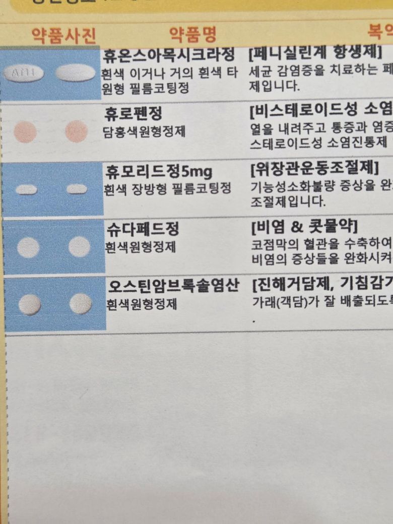 여기에 알러지 비율이 높은 약이 아목시크라, 휴로펜정입니다.