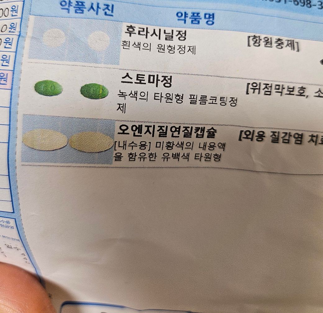 산부인과에서 처방받은 <후라시닐정, 스토마정, 오엔지 질연질캡슐>과