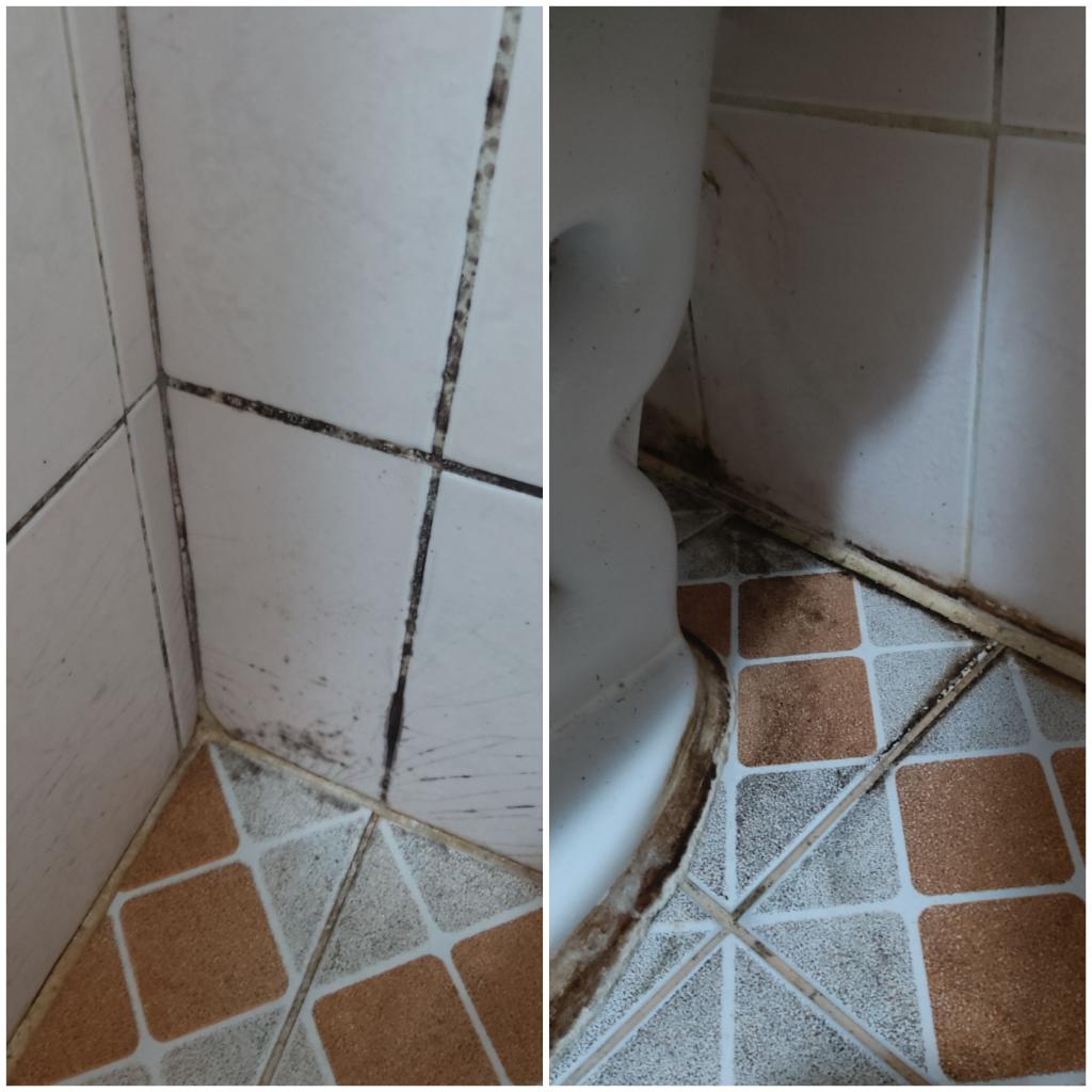 곰팡이부분 살살긁어내고 백시멘트 작은거하나사서 물에 반죽해서 바르시면 깨끗해져요