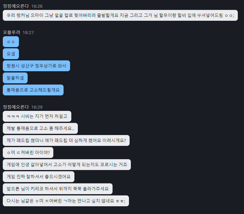 자긴 실력이고 게임 열심히 하고있는데 왜 나한테 욕하냐면서 게임 끝나고 친추가 왔습니다.