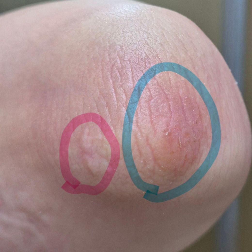 만약 해당 부위를 직접 눌렀을 때 덩이가 만져지는 상태라면 피지 낭종일 가능성이 있어 곧바로 외과로 방문을 하셔도 될 것으로 보이나, 이전에 다른 알레르기성 피부염의 가능성을 배제하기 위해 우선 피부과에 방문하셔서 진찰을 먼저 받아보시는 것이 조금 더 좋을 것으로 사료됩니다.