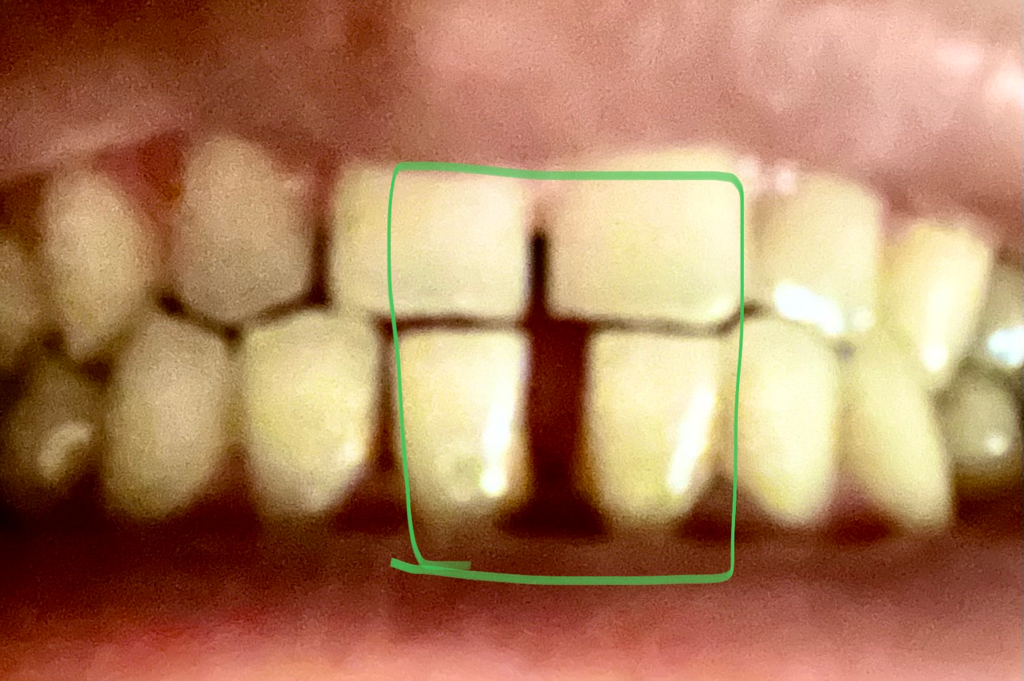 벌어진 공간을 레진으로 붙히는 방법과, 치아 2개 전체적으로 씌우는 크라운 치료를 하여 공간을 없애는 2가지가 있습니다.