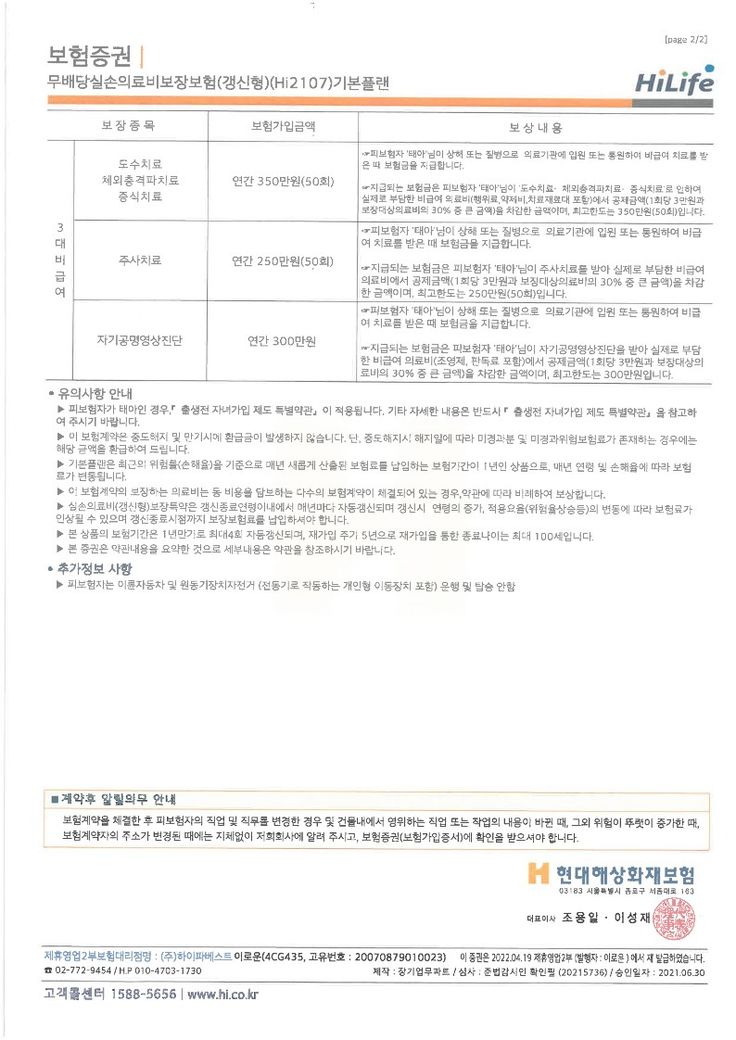 종합보험에 보면 20세 만기 특약이 있습니다.