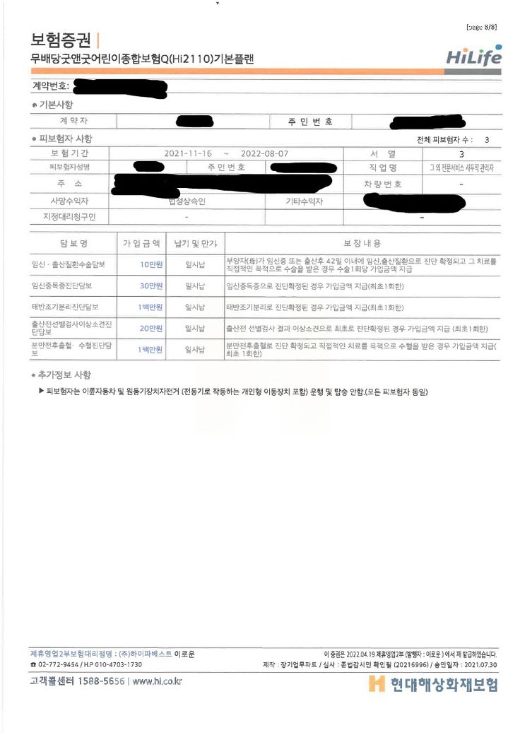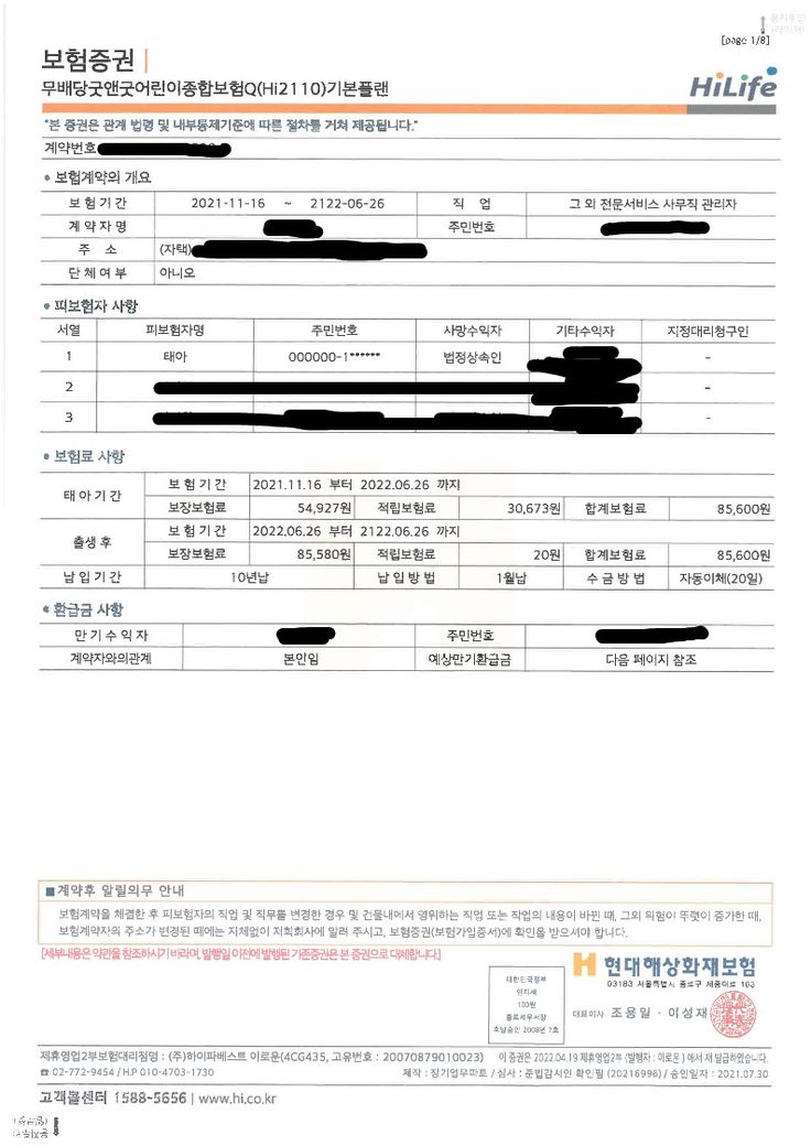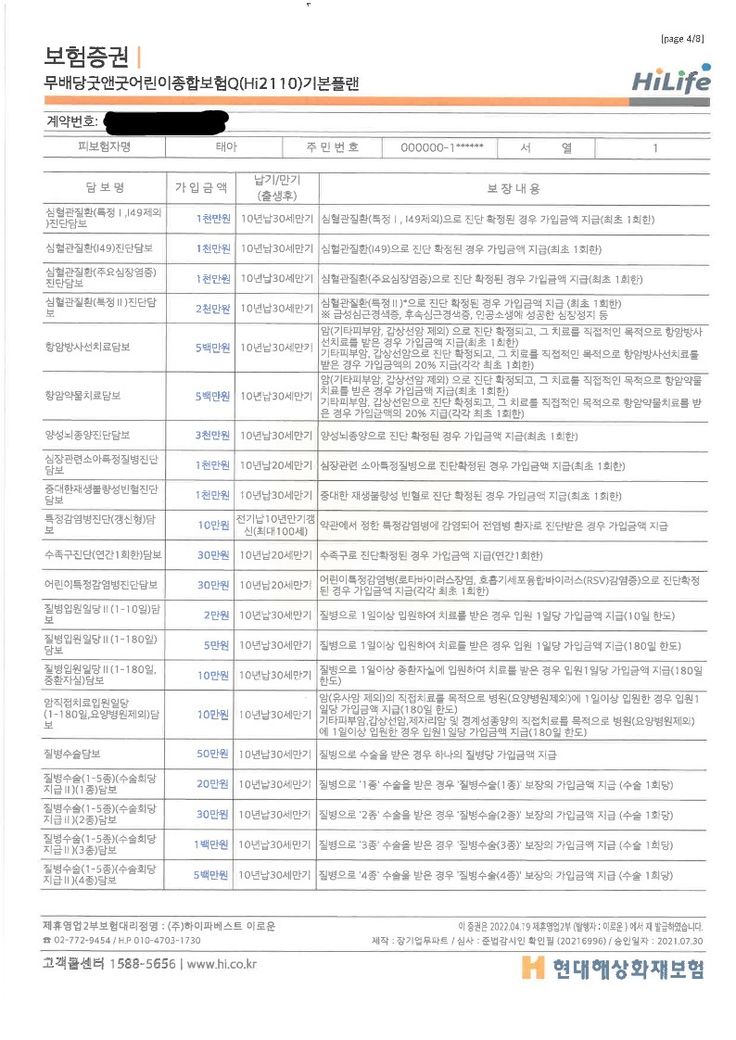 우선 몇몇 특약은 100세만기로 되어 있으니 전부 30세만기로 바꾸시고요.
