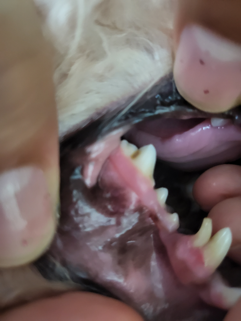 송곳니에 유치가 안빠지고 남아 있어 이것도 같이 빼줘야 합니다.