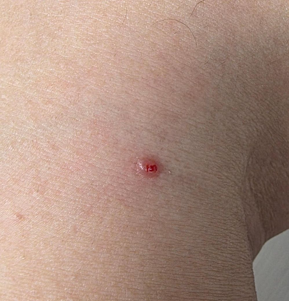한 3주사이에 사진처럼 크기가 1.5배정도 커졌고 옷에 닿이면 불편하고 세게 만지면 살짝 따가운 수준의 불편함이 느껴집니다 또 세게 누른다고 터지지 않고 옷에 쓸려 표면이 거칠어 졌습니다.