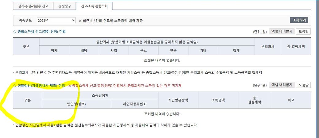 연말정산 소득 잘못 신고? 질문 홈텍스 조회