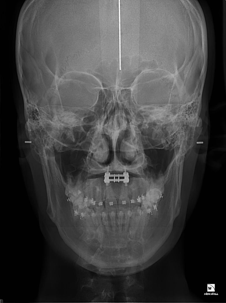 왼쪽사진이 악궁확장돌리기전이고 오른쪽사진이 악궁확장 돌리기후인데 왼쪽사진 엑스라이상에 광대뼈가 하얀색 이어로드에 닿지않고 공간이 널널한반면에 두번째사진에서는 하얀색이어로드 위치를보시면 광대뼈가 닿아있습니다 저만큼 광대뼈가 자랐다는건가요?