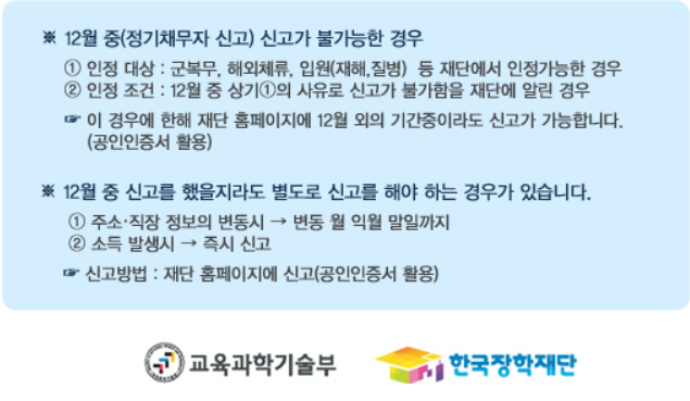 신고하셔야 하며 신고를 하지 않을 경우에는 학자금 관련 법률에 의거하여