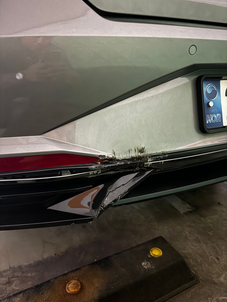 밑 범퍼는 부러졌습니다 자차 보험은 되어있습니다