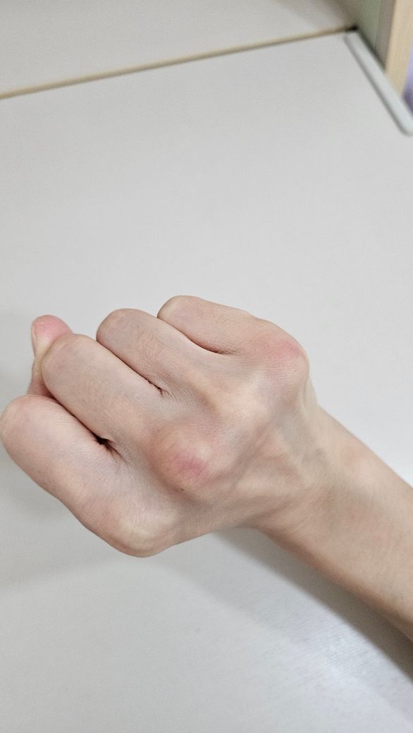 두 달전에 책상을 내려쳐서 그날 저녁부터 손이 붓고 주먹을 쥐기 힘들었습니다. 이틀 정도 후에는 주먹도 쥐어지고 일상생활은 다 가능했고요. 근데 두 달이 지난 아직까지도 피부색이 붉어요. 주먹을 쥐거나 손을 쫙펴도 뼈가 조금 튀어 나온게 보이고요 . 5번인 새끼 손가락 아래는 콩알정도 크기로 중수골 아래 튀어나오기도 했습니다.