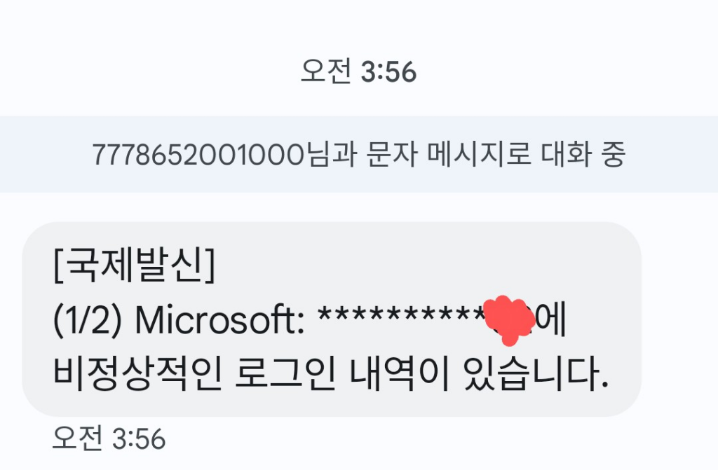 새벽에 이런 문자를 받았어요.검색해도 잘 모르겠네요.제 마이크로소프트 이메일에 대한 해킹 시도를 경고한 것인가요?
