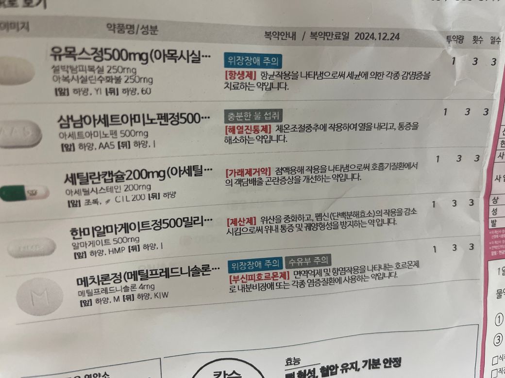 감기 증세로 처방받았는데