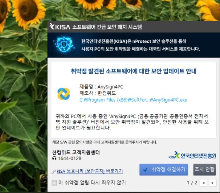 이런 알람이 요즘에 뜨더라구요. 보안에 취약점 때문이라고 뜨는데, 이거 믿을만한 건가요? 업데이트 해도 될까요? 궁금합니다.