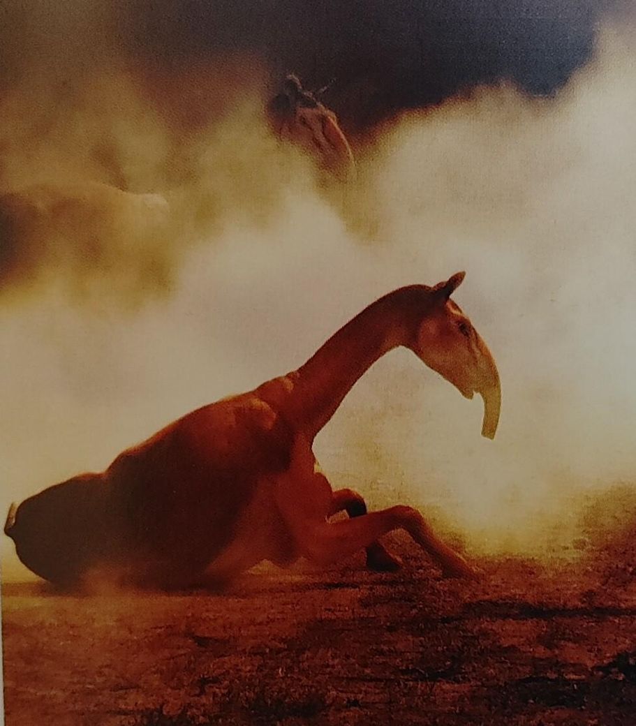 예전에는 마크라우케니아가 코끼리나 맥처럼 긴 코를 가지고 있었을 것이라는 추측이 많았습니다. 왜냐하면 콧구멍이 미간에 위치하고 있었기 때문이죠.