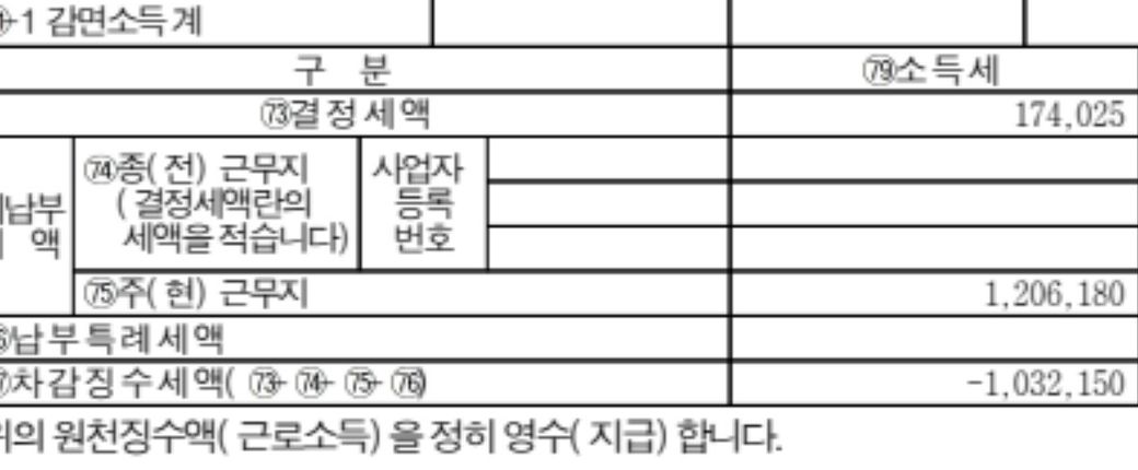 종전 근무지에서 받은 근로소득원천징수서에 기재된 차가감징수세액은 근무했던 회사에서 퇴사할 때 정산받는 금액입니다.