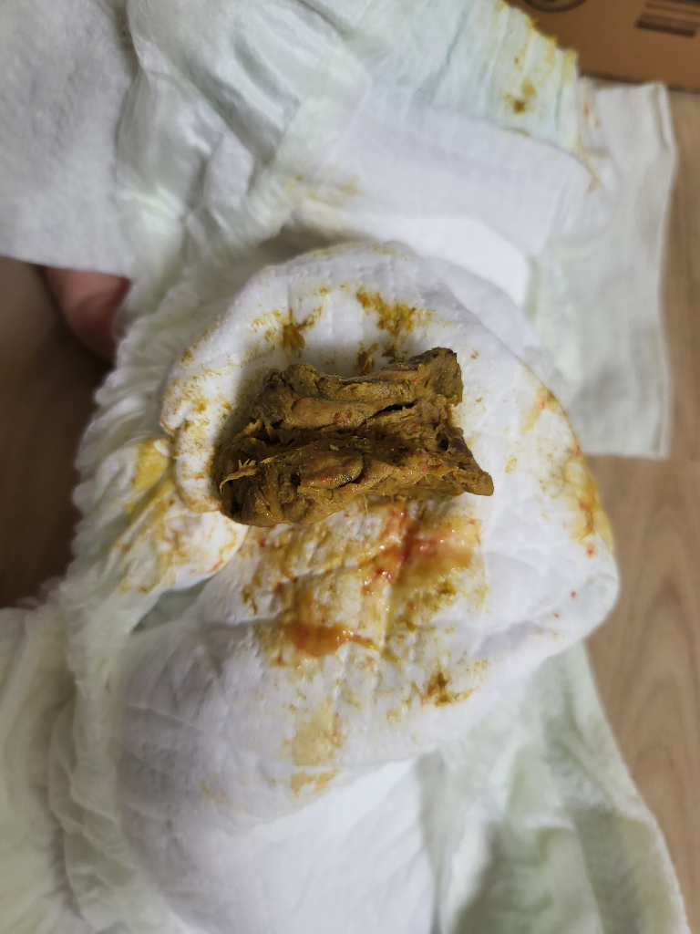 변이 무르지는 않고 살짝 단단해 보입니다. 이런 변으로 인해 항문에 상처가 있을 수 있습니다. 모습으로만 보면 장염은 아닌거 같은데 소아청소년과에 방문하셔서 정확한 진료를 받아보시기 바랍니다.