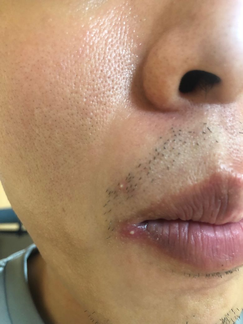 왼쪽 입술 끝이랑 수염난 자국에 하얗게 뭐 났는데 이게 뭔가요? 입을 벌리면 약간 따갑거던요.. 이걸 뭐라고 부르나요? 나을려면 무슨 연고 발라야 하나요? 피부과 가서 처방 받아야 하나요?