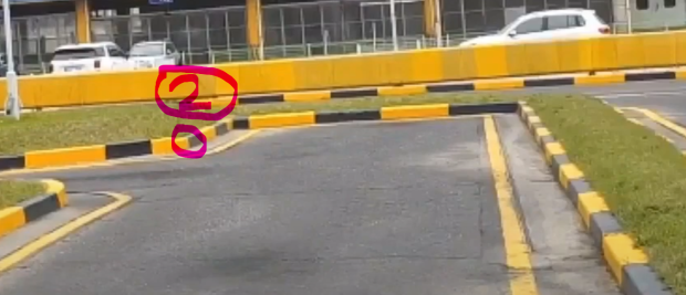 9. 쭉 직진하다가 오른쪽 선이 3번 사진인 노란선에 닿으면 핸들 우측으로 다 돌리고 빠져나오기