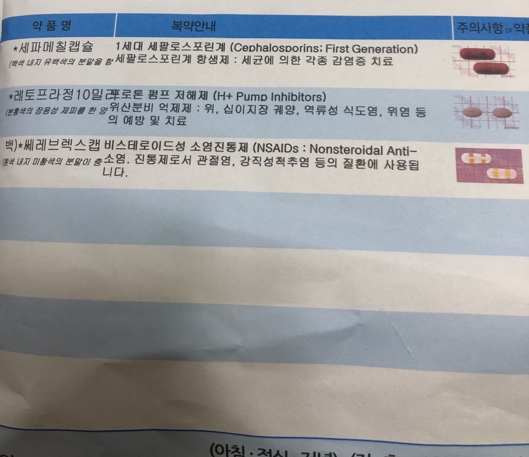 아래 처방약을 먼저 드시고 안들으면 위 처방약을 복용하세요