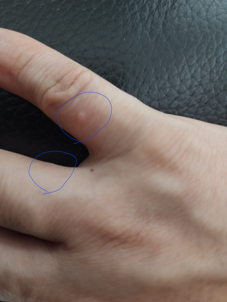 손가락 가쪽에 수포가 발생하는 것으로 보아 한포진으로 생각이 됩니다.
