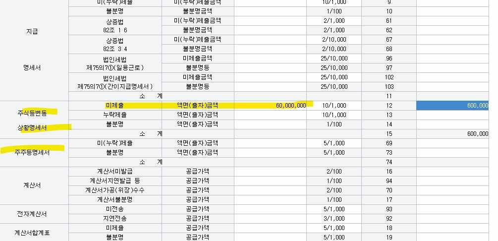법인세에서 주식변동명세서 제출안한경우 가산세탭에 주주등명세서랑, 주식변동상황명세서 둘다 가산세 반영하나요?