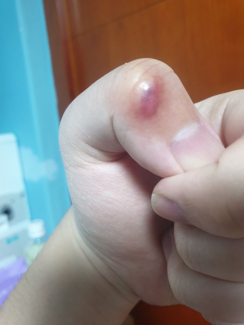 넘어진 상처가 부풀어 올라서 병원에 갔더니 항생제랑 소염제 약처방해주셨는데 책상 모서리에 세게 부딫혔더니 보라색으로 변했습니다. 괜찮은 걸까요?