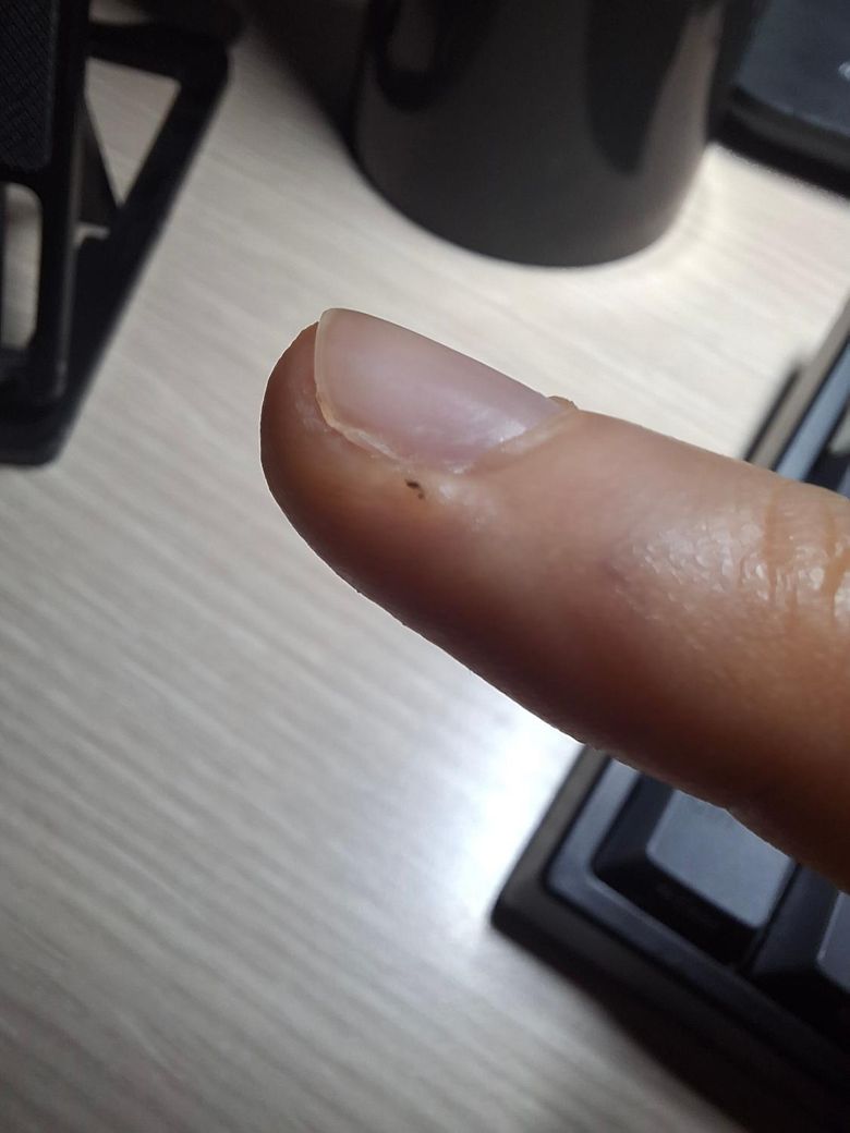 위사진에서 손톱왼쪽에 중간에 검은색에 볼록 올라와있고요