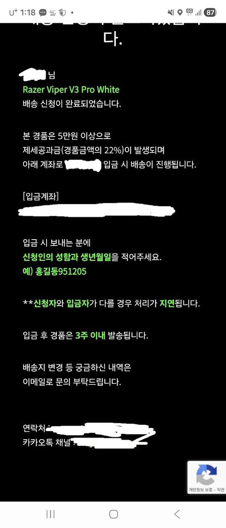 그러고 한달 넘게 지났는데 경품이 안왔습니다.