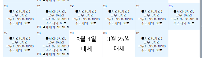 3월 29일은 3월 1일에 대한 법정공휴일 유급휴일 대체일로 넣은 것이고