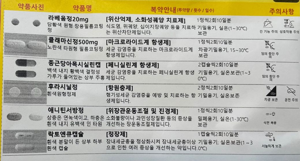 3가지 항생제를 먹기에, 설사가 생길 수 있다는 점도 알려드립니다.