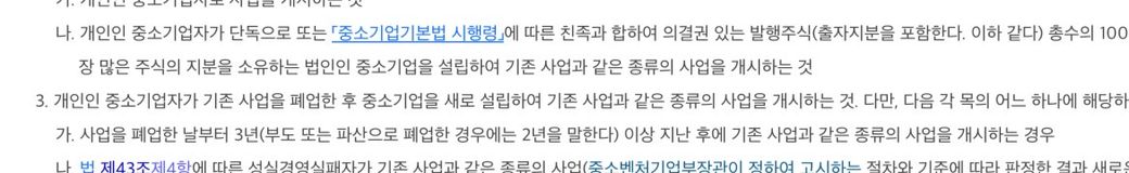 (첨부: 중소기업창업 지원법 시행령 제2조 제1항 제3호 캡처 이미지)