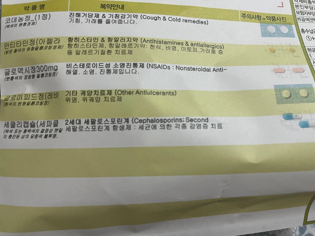 사진의 약들 먹고 타이레놀 먹어도 되나요? 미열이 있는 거 같아서요. 그리고 제 증상은 목 부음, 가래, 콧물인데 위염약은 왜 있는 건가요??